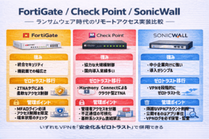 以下のチェック項目を「YES / NO」で確認してください。 入口対策(侵入させない) 🔐 認証・アクセス管理 ・ VPN・リモートアクセスは 多要素認証(MFA) を使用している・ ID・パスワードの使い回しは禁止され […]